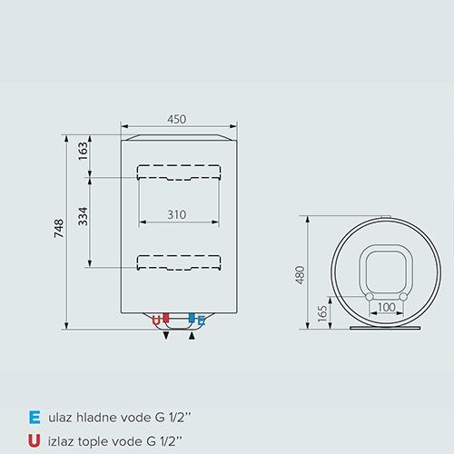 Vrijeme zagrijavanja (ΔT 45°C): oko 1 sat i 45 minuta